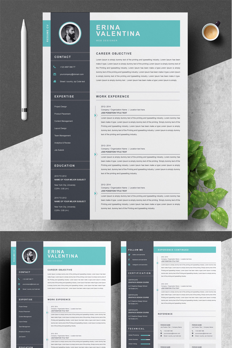 Download Резюме "Erina Valentina Resume Template" / Erina Valentina Resume Template - Резюме на тему графика 1 page resume 2 3 apple clean cover letter creative illustrator eps mac pages microsoft word minimal resume modern template