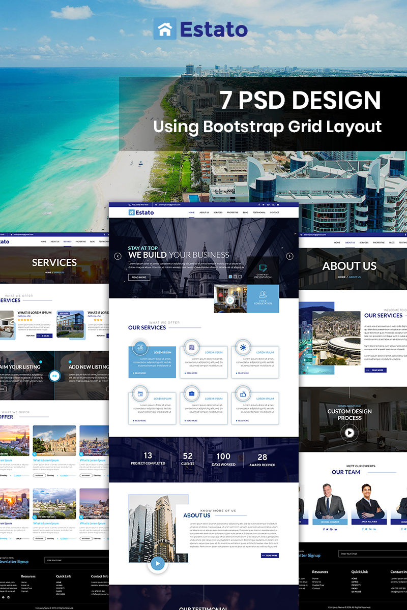 Download PSD шаблон "Estato - Real Estate Company PSD Template" / Estato - Real Estate Company PSD Template - PSD шаблон на тему недвижимость real estate business theme template psd photoshop