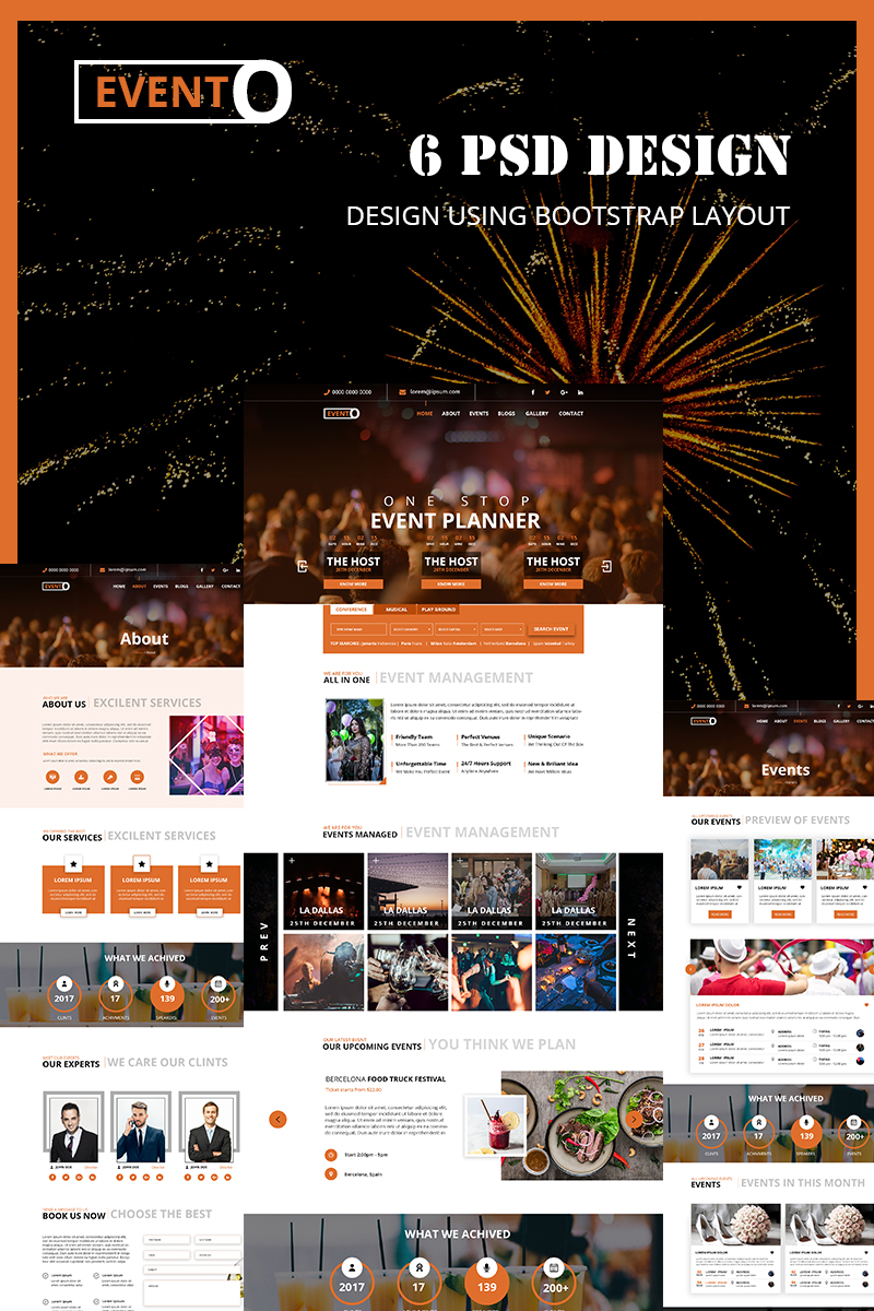Download PSD шаблон "Evento PSD Template" / Evento PSD Template - PSD шаблон на тему управляющая компания event management packages agency corporate conference wedding creative planner organization venue decoration business meeting openevent theme responsive photoshop psd