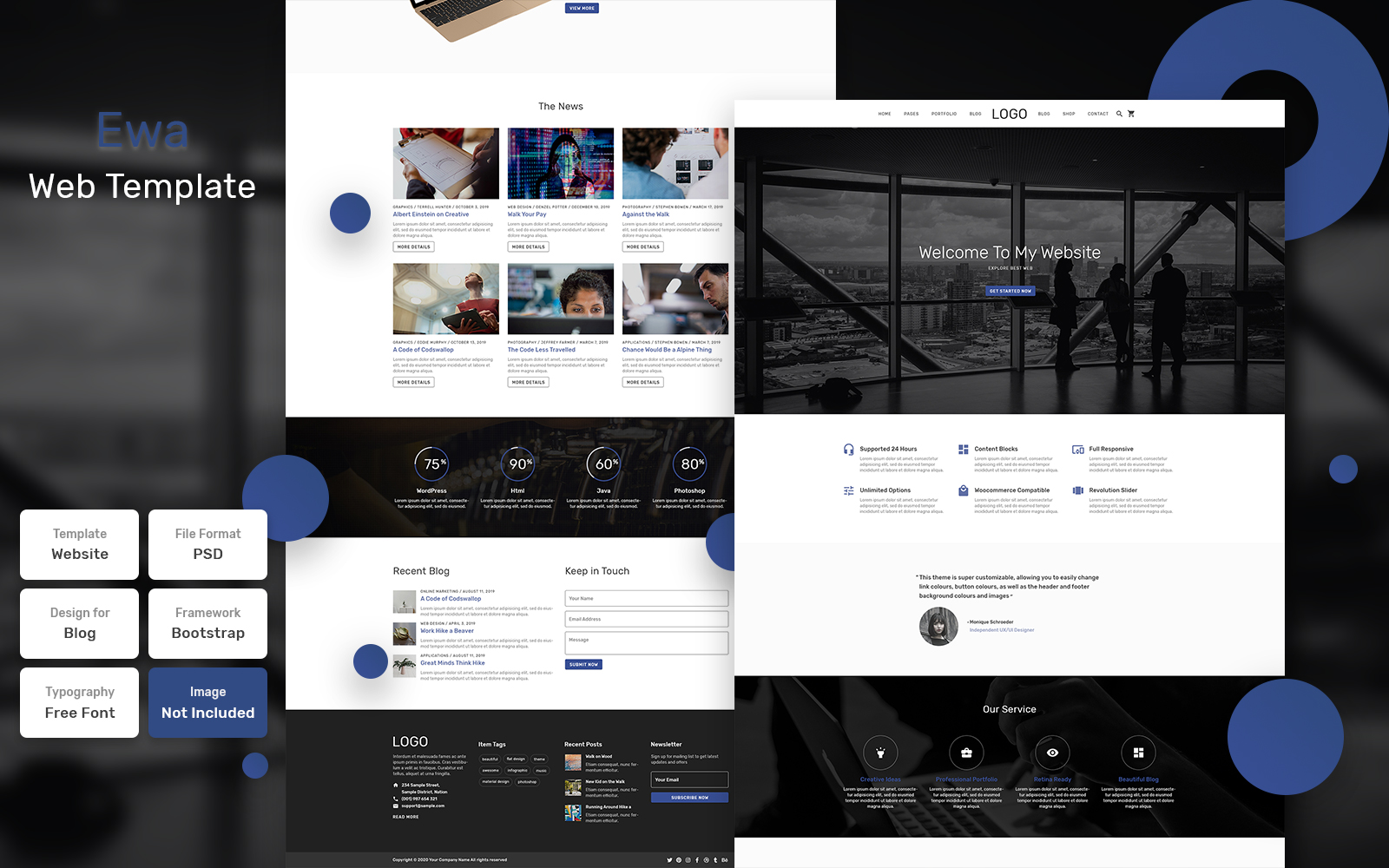 Download PSD шаблон "Ewa - Business Material PSD Template" / Ewa - Business Material PSD Template - PSD шаблон на тему дизайн и фотография design,template,web,website,web design,landing page,page,web template,landing,business,marketing,digital,seo,blog,portfolio,services,responsive,theme,agency