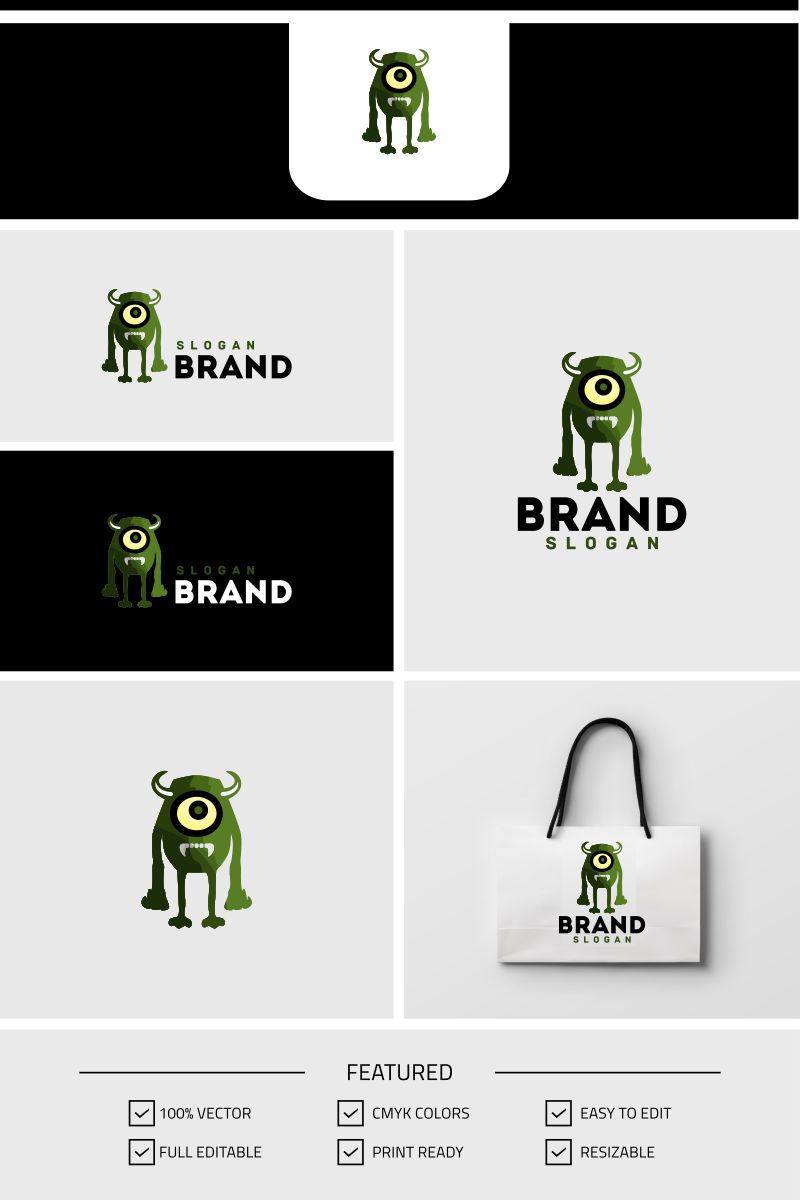 Download Шаблон логотипа "Eye Monster Logo Template" / Eye Monster Logo Template - Шаблон логотипа на тему графика animation studio application cartoon children cute design devil elite game shop gamer happy kids kindergarten learning mascot monster school eye