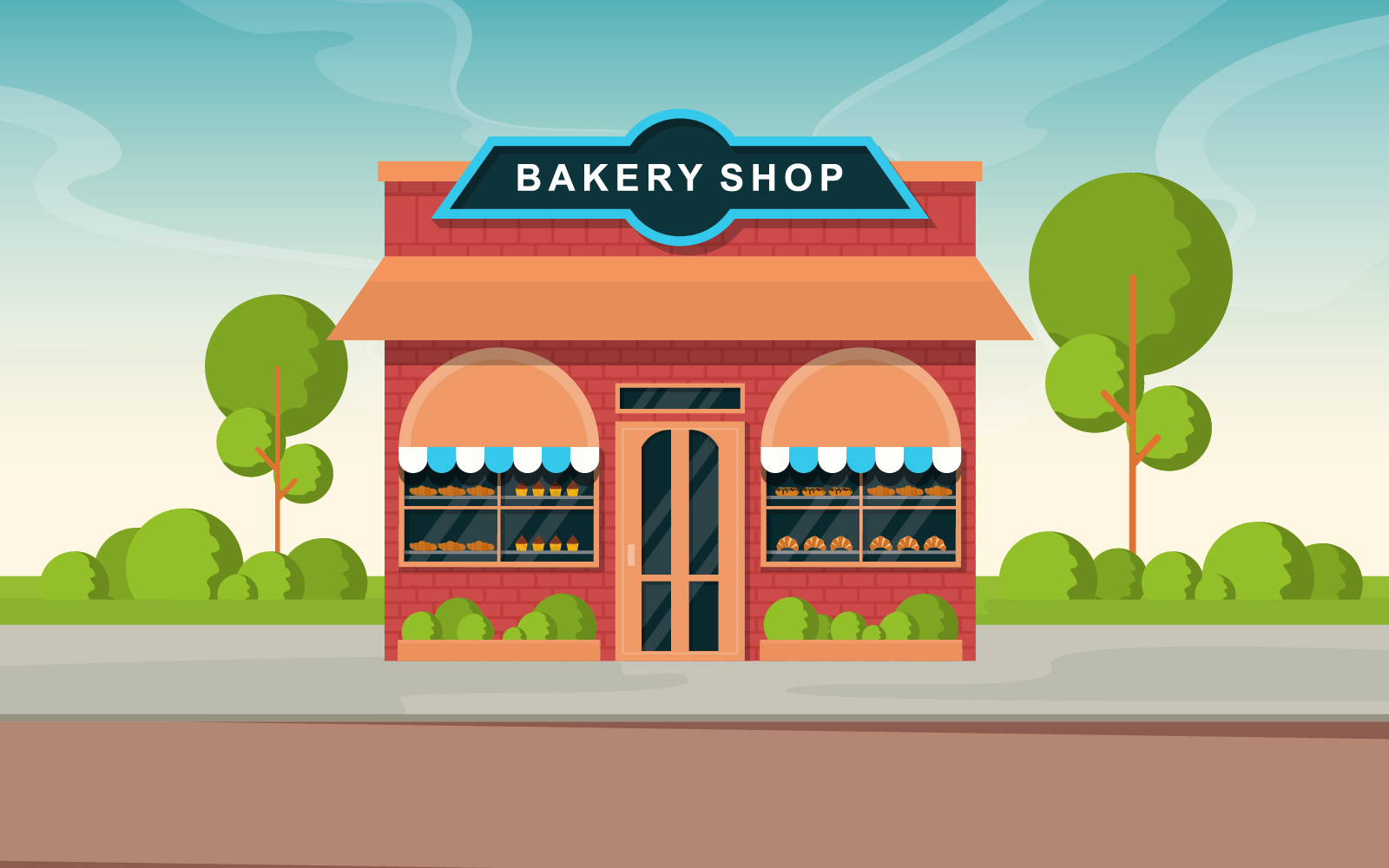 Download Иллюстрация "Facade Store Bakery - Illustration" / Facade Store Bakery - Illustration - Иллюстрация на тему графика showcase,bakery,shop,food,store,facade,street,cartoon,illustation,vector,business,exterior,awning,supermarket,architecture,bread,sweet,cafe,cake,dessert
