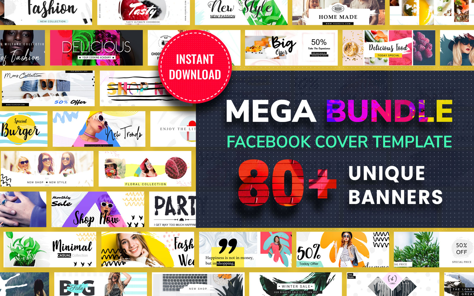 Download Шаблон для соцсетей "Facebook Cover Mega Bundle Social Media Template" / Facebook Cover Mega Bundle Social Media Template - Шаблон для соцсетей на тему графика facebook,cover,templates,mega,bundle,social,media,template,business,blog,fashion,shop,magazine,personal,post,posts