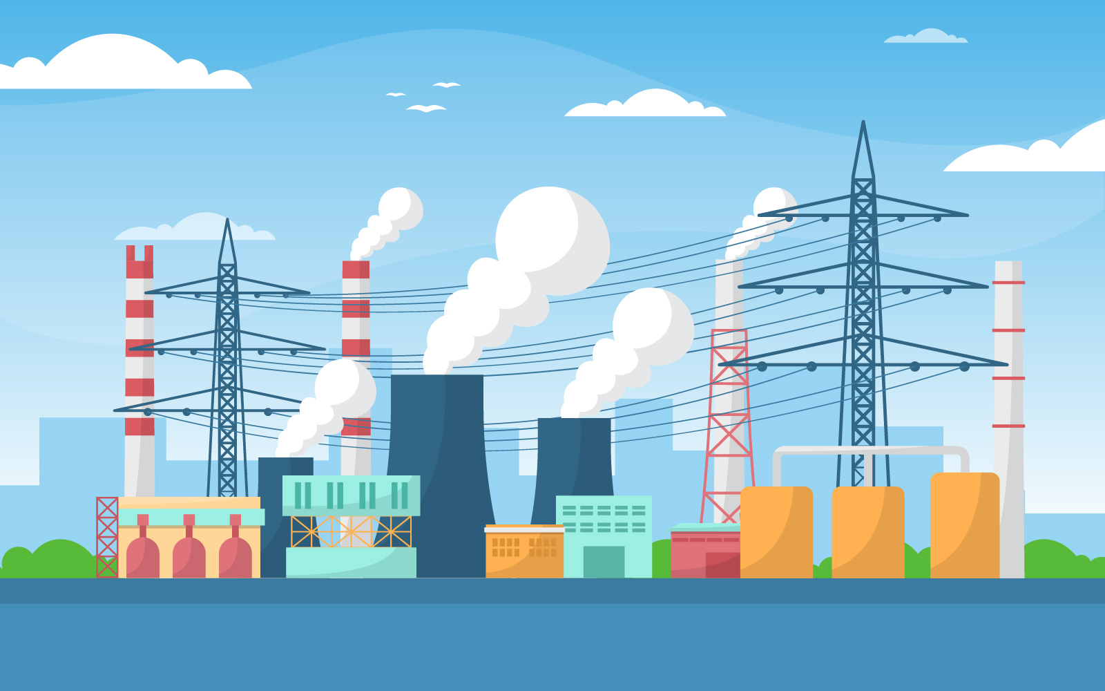 Download Иллюстрация "Factory Area Manufacturing - Illustration" / Factory Area Manufacturing - Illustration - Иллюстрация на тему графика industrial,factory,concept,manufacturing,building,facilities,area,flat,illustration,landscape,vector,business,engine,industry,manufacture,cloud,sky,road,day,sun