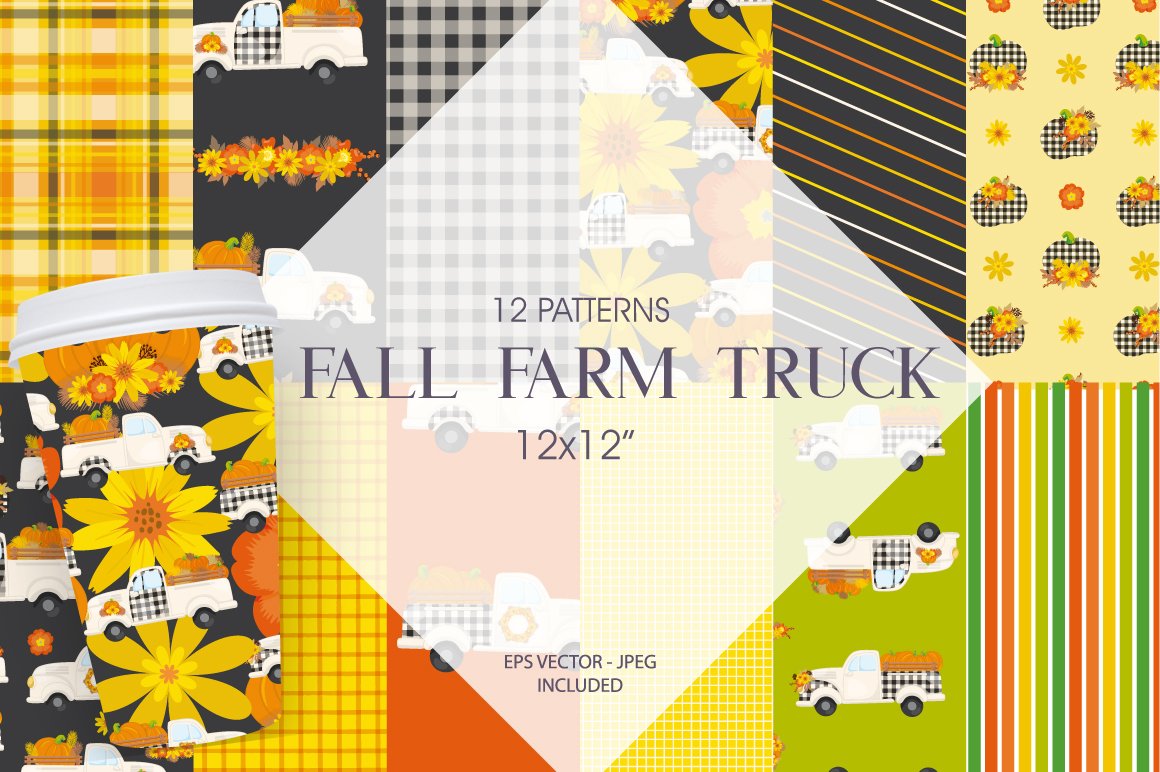 Download Vector "Fall Farm Truck - Vector Image" / Fall Farm Truck - Vector Image - Vector на тему графика scrapbook papers,scrapbook pages,prettygrafik,digital paper pack,instant download,digital paper,florals,fall truck,farm truck,floral truck,truck with pumpkins