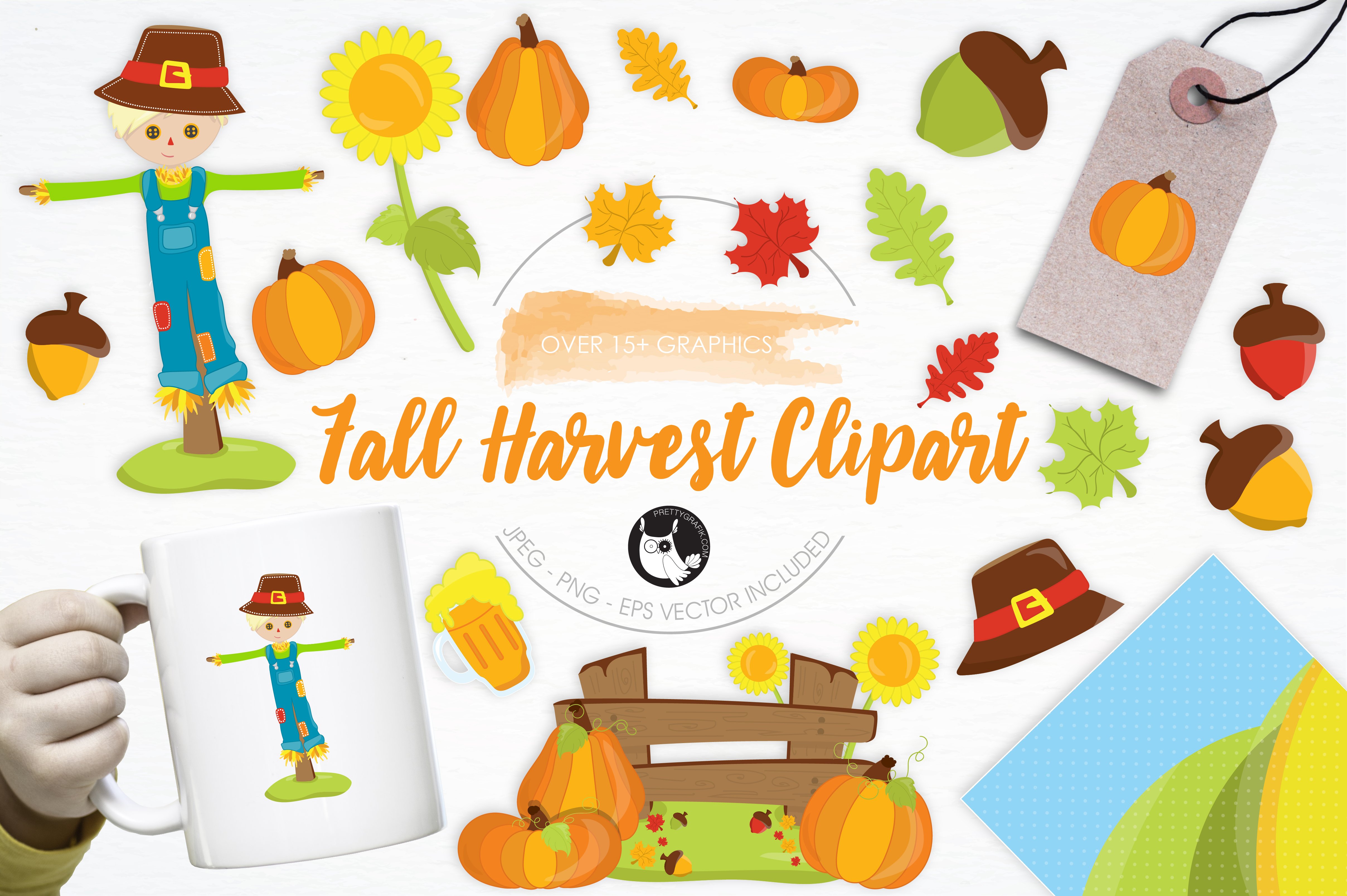 Download Vector "Fall Harvest Clipart illustrations - Vector Image" / Fall Harvest Clipart illustrations - Vector Image - Vector на тему графика illustration,fall,vector,graphics,clipart,clip art,icon,pumpkin,acorn,harvest,eps,sunflower,prettygrafik,fall harvest clipart,scarecrow