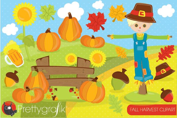 Download Vector "Fall Harvest Clipart - Vector Image" / Fall Harvest Clipart - Vector Image - Vector на тему графика illustration,beer,fall,autumn,vector,clipart,clip art,leaves,pumpkin,image,harvest,sunflower,digital art,scarecrow,scrabooking