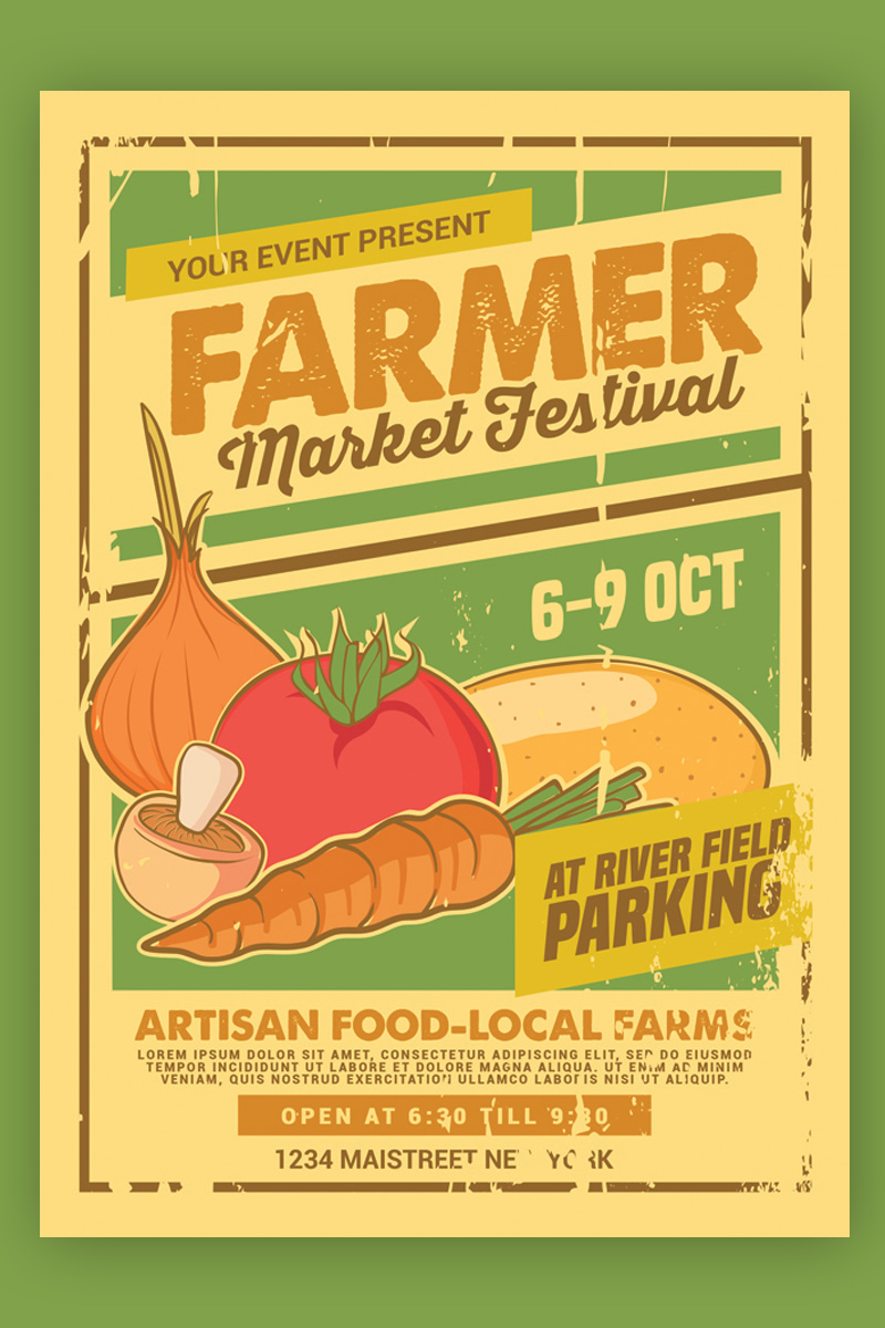 Download Фирменный стиль "Farmer Market Festival - Corporate Identity Template" / Farmer Market Festival - Corporate Identity Template - Фирменный стиль на тему графика chicken cow eggs event farmer market farmers festival flyer fruit fruits holiday instagram template milk poster rooster sell shop store