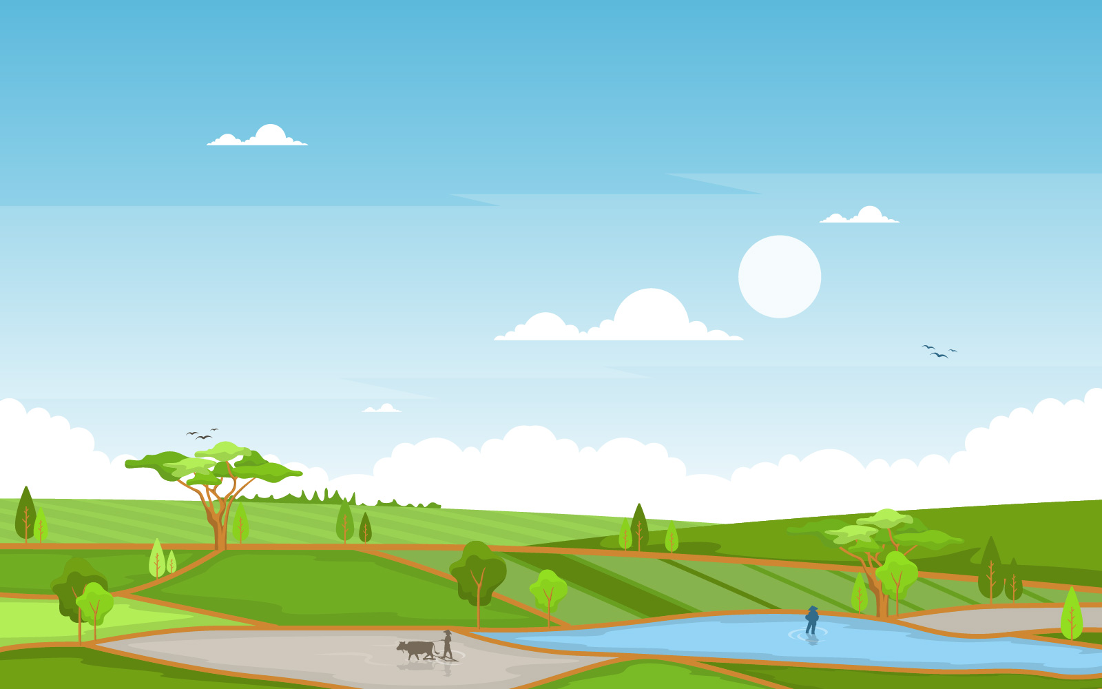 Download Иллюстрация "Farmer Rice Paddy - Illustration" / Farmer Rice Paddy - Illustration - Иллюстрация на тему графика asian,farmer,cultivating,rice,field,paddy,plantation,agriculture,illustration,vector,village,landscape,farm,road,background,hills,path,asia,dirt,garden