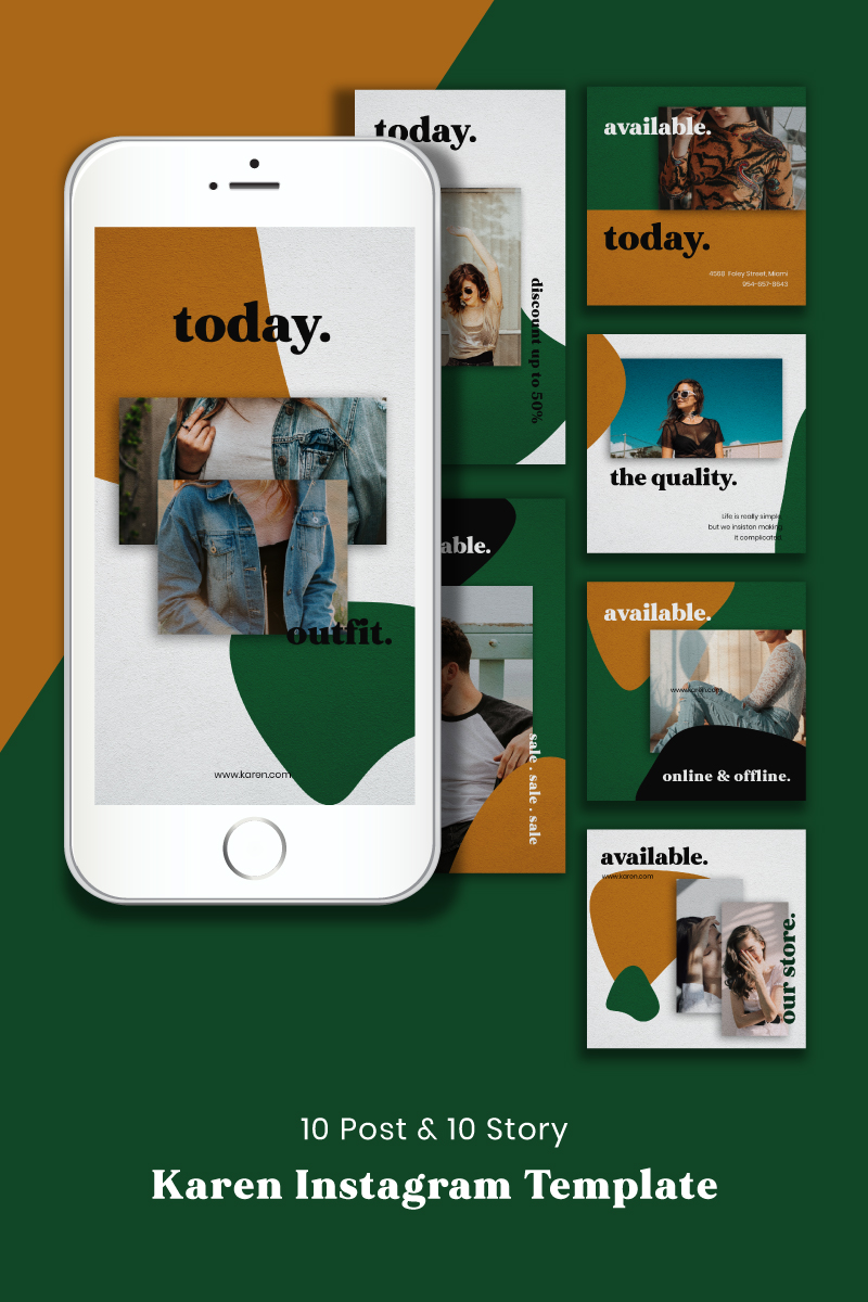 Download Шаблон для соцсетей "Fashion Instagram Templates - Karen for Social Media" / Fashion Instagram Templates - Karen for Social Media - Шаблон для соцсетей на тему графика conceptual clothing ecommerce facebook post fashion gray instagram posts instagram stories jewelry store luxury brand minimalist modern promotion psd templates
