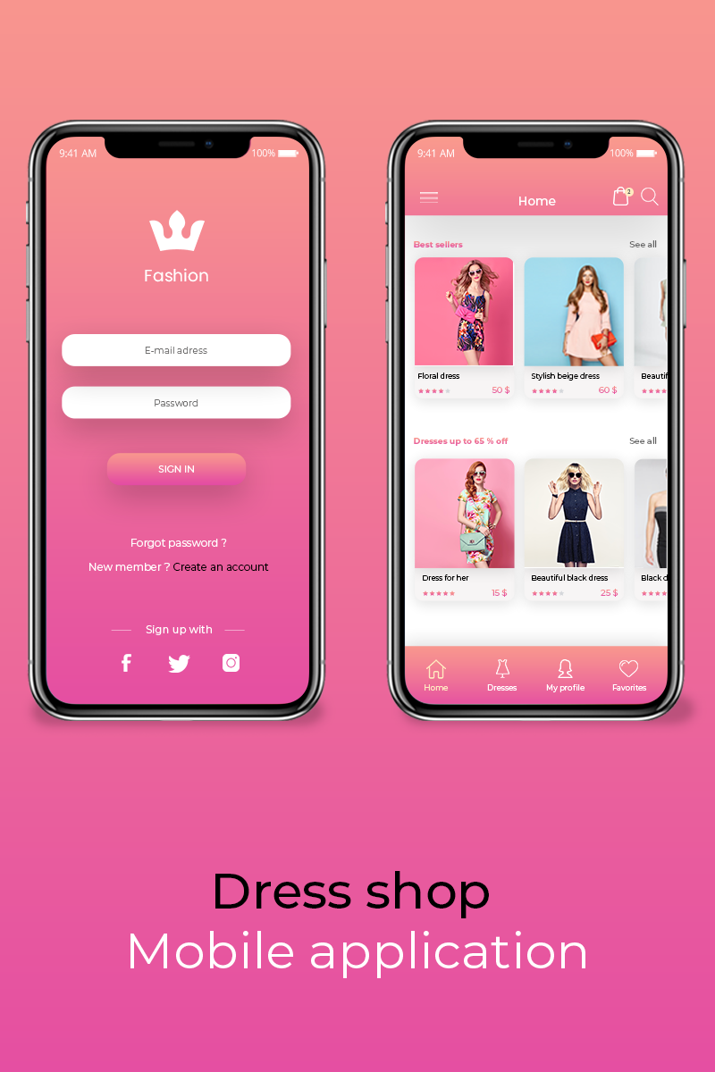 Download PSD шаблон "Fashion PSD Template" / Fashion PSD Template - PSD шаблон на тему графика mobile application fashion women clothes sell dress products store shopping