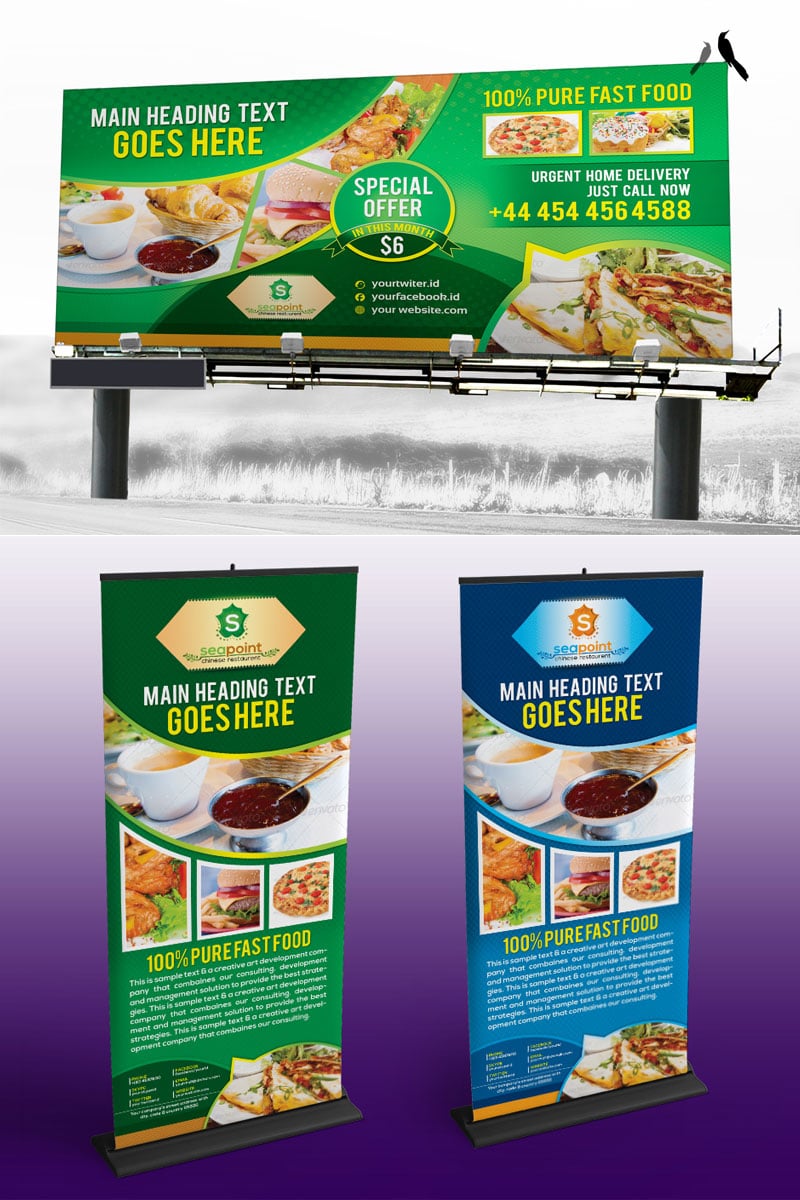 Download Бандл шаблонов билбордов для рекламы еды / Fast Food Billboard - Corporate Identity Template - Фирменный стиль на тему графика fast food restaurant hotel signage pack bundle billboard template rollup banner outdoor indoor counter promotional shop sign location bar cafe