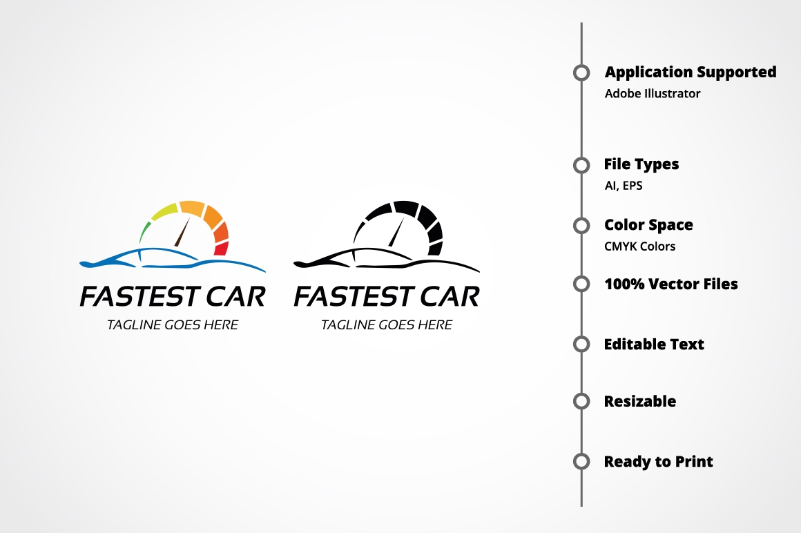 Download Шаблон логотипа "Fastest Car Logo Template" / Fastest Car Logo Template - Шаблон логотипа на тему графика automotive,car,logo,modern,racing,speed,speed racing,speedometer,sport,tuning,vector