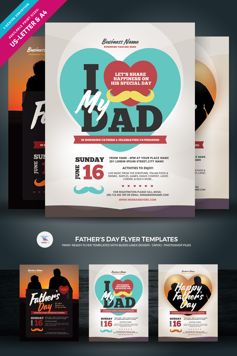Download Фирменный стиль "Father's Day Flyer - Corporate Identity Template" / Father's Day Flyer - Corporate Identity Template - Фирменный стиль на тему графика father's day mother's mother father night party brunch contest service church festival games celebration love valentine's woman flyer leaflet heart