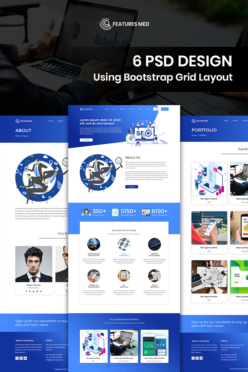 Download PSD шаблон "Features Med - SEO Services PSD Template" / Features Med - SEO Services PSD Template - PSD шаблон на тему графика seo services theme template photoshop psd