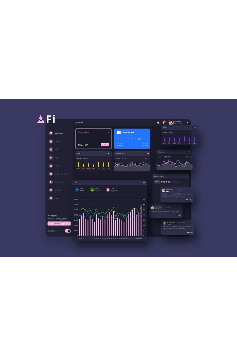 Download Sketch шаблон "Fi Finance Dashboard Ui Dark Sketch Template" / Fi Finance Dashboard Ui Dark Sketch Template - Sketch шаблон на тему графика