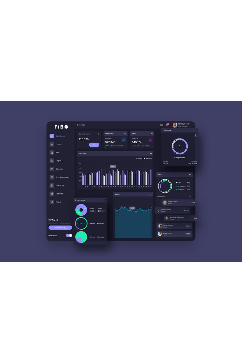 Download Sketch шаблон "FiBO Finance Dashboard Ui Dark Sketch Template" / FiBO Finance Dashboard Ui Dark Sketch Template - Sketch шаблон на тему графика