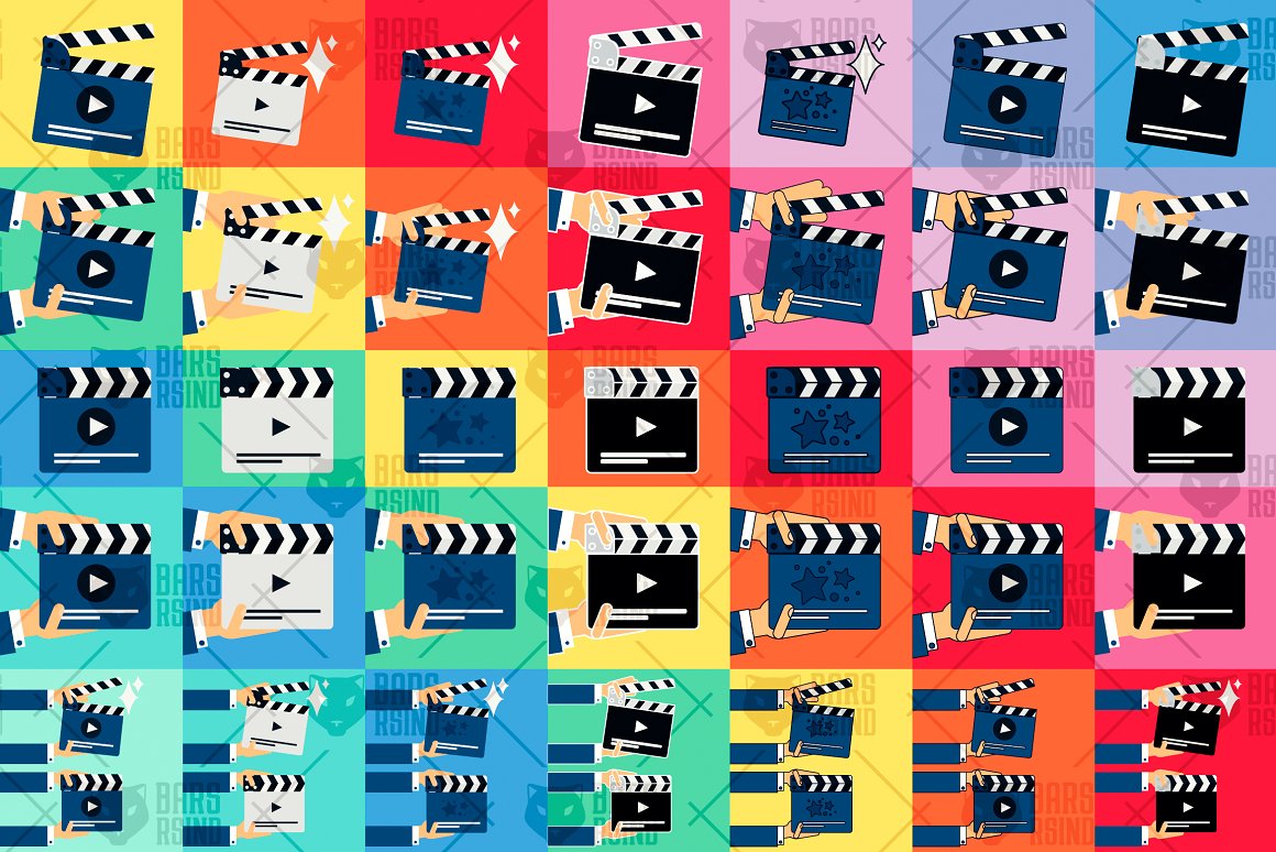 Download Набор иконок "Film And Movie Icon Set" / Film And Movie Icon Set - Набор иконок на тему music movie,clapperboard,scene,board,director,camera,production,background,video,clapper,studio,film,clapboard,clap,symbol,isolated,entertainment,action,cinema,icon