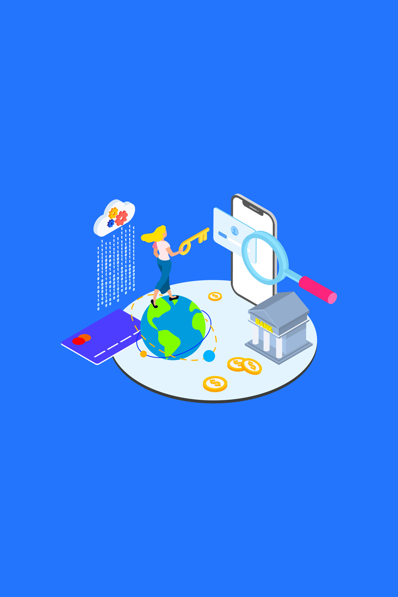 Download Иллюстрация "Financial Access 1 - Illustration" / Financial Access 1 - Illustration - Иллюстрация на тему графика isometric illustration blockchain platform finance report chart analysis growth device laptop bussiness strategy people design.