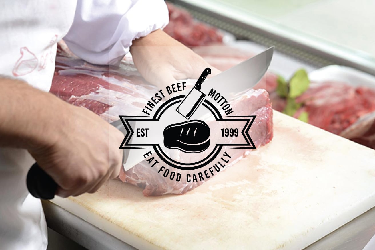 Download Шаблон логотипа "Finest-Beef-Motton Logo Template" / Finest-Beef-Motton Logo Template - Шаблон логотипа на тему графика butcher,beef,meat,beaf,icon logo,knife,vector,finest,motton,finestbeefmotton,food,eat,mood
