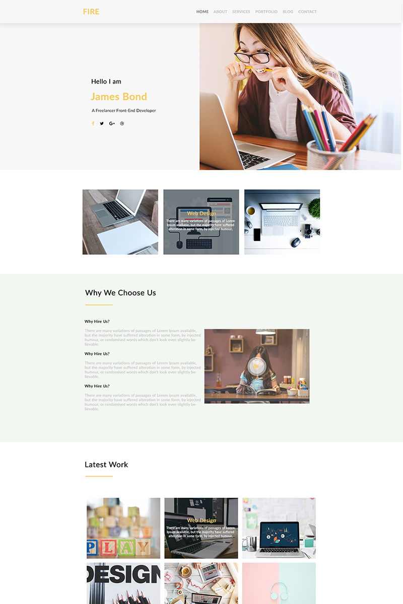 Download PSD шаблон "Fire Multipurpose Personal Portfolio PSD Template" / Fire Multipurpose Personal Portfolio PSD Template - PSD шаблон на тему веб-дизайн creative modern freelancer web design development photography business agency company multipurpose portfolio