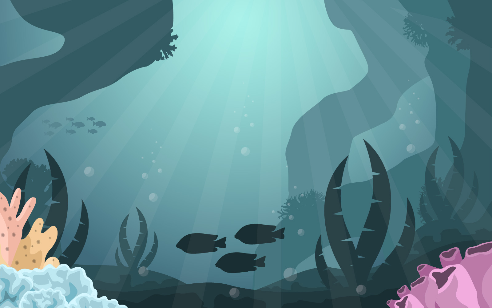 Download Иллюстрация "Fish Coral Underwater - Illustration" / Fish Coral Underwater - Illustration - Иллюстрация на тему графика underwater,sea,ocean,undersea,fish,coral,vector,illustration,design,animal,flora,fauna,deep,marine,reef,water,blue,cave,seascape,exotic