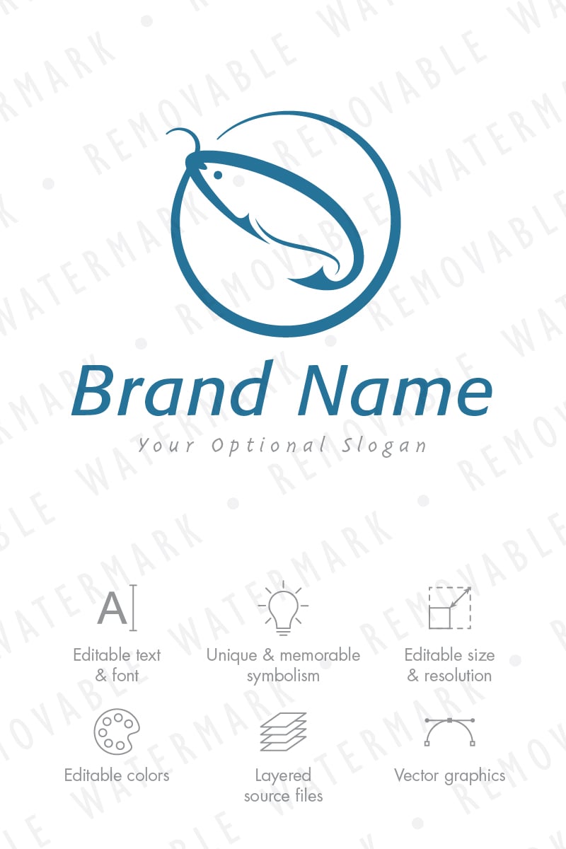 Download Шаблон логотипа "Fish Hook Logo Template" / Fish Hook Logo Template - Шаблон логотипа на тему графика simple circle water food river fish sport sea equipment angle lake marine fishing hook bait angling salmon logo design template