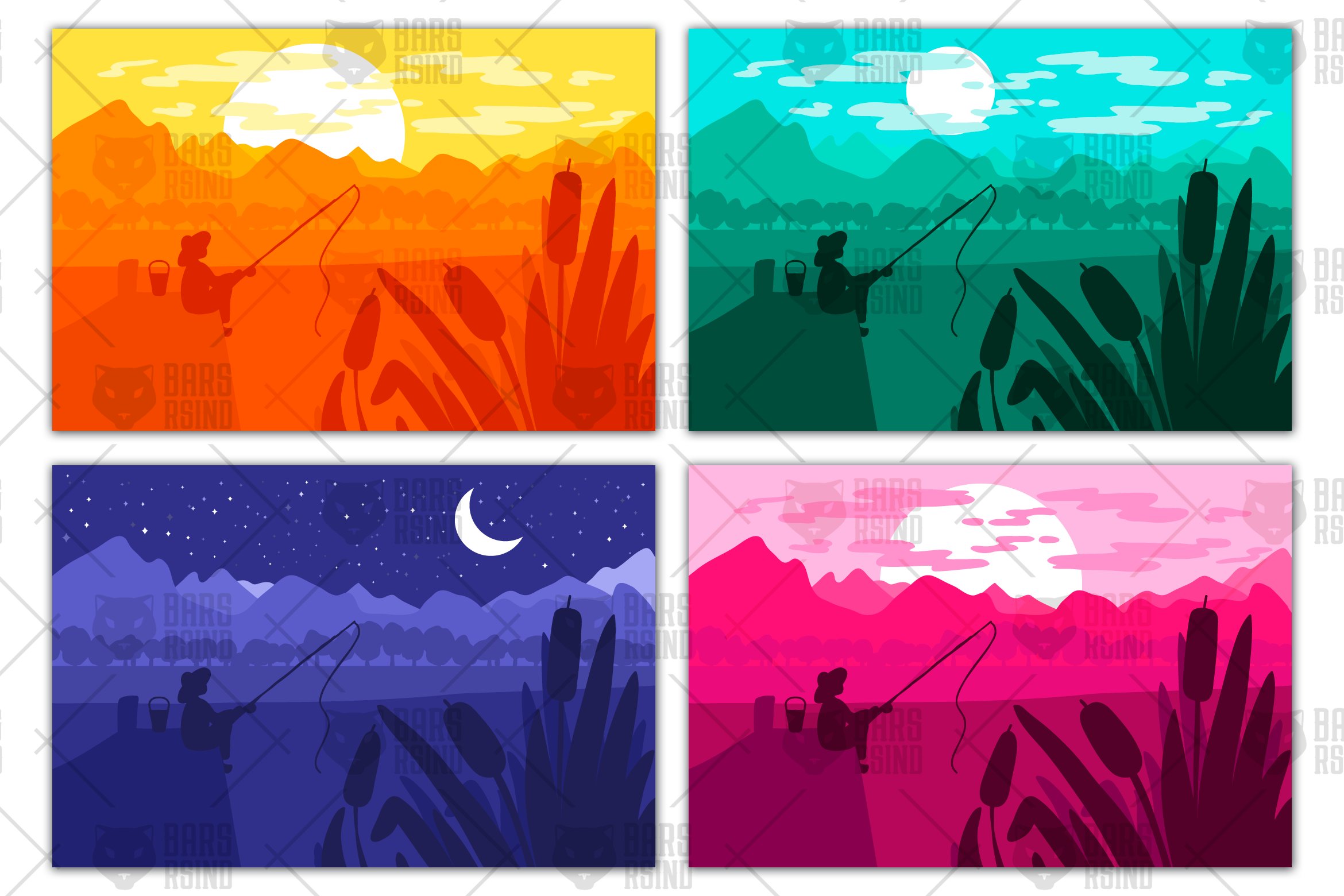 Download Vector "Fisherman with fishing rod on river - Vector Image" / Fisherman with fishing rod on river - Vector Image - Vector на тему графика illustration,nature,vector,beach,tree,forest,background,mountain,outdoor,trees,silhouette,landscape,mountains,scene,trip,scenery,person,rest,coast,panorama,lake,bridge,river,shore,outside,fis