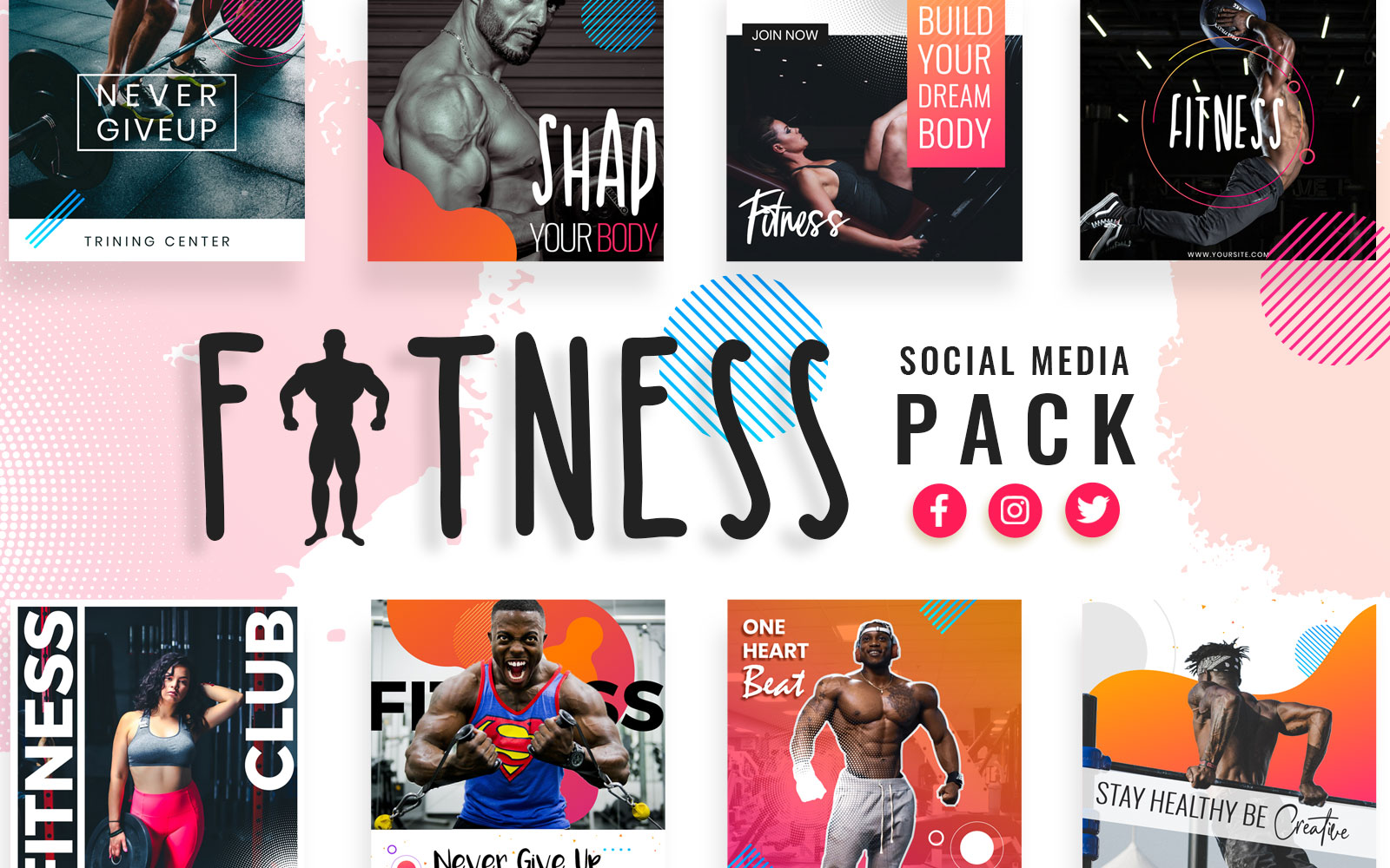 Download Шаблон для соцсетей "Fitness & Gym Social Media Template" / Fitness & Gym Social Media Template - Шаблон для соцсетей на тему графика fitness,gym,social,media,templates,promotion,activities,template,promotions,facebook,instagram,twitter,post,banner,banners