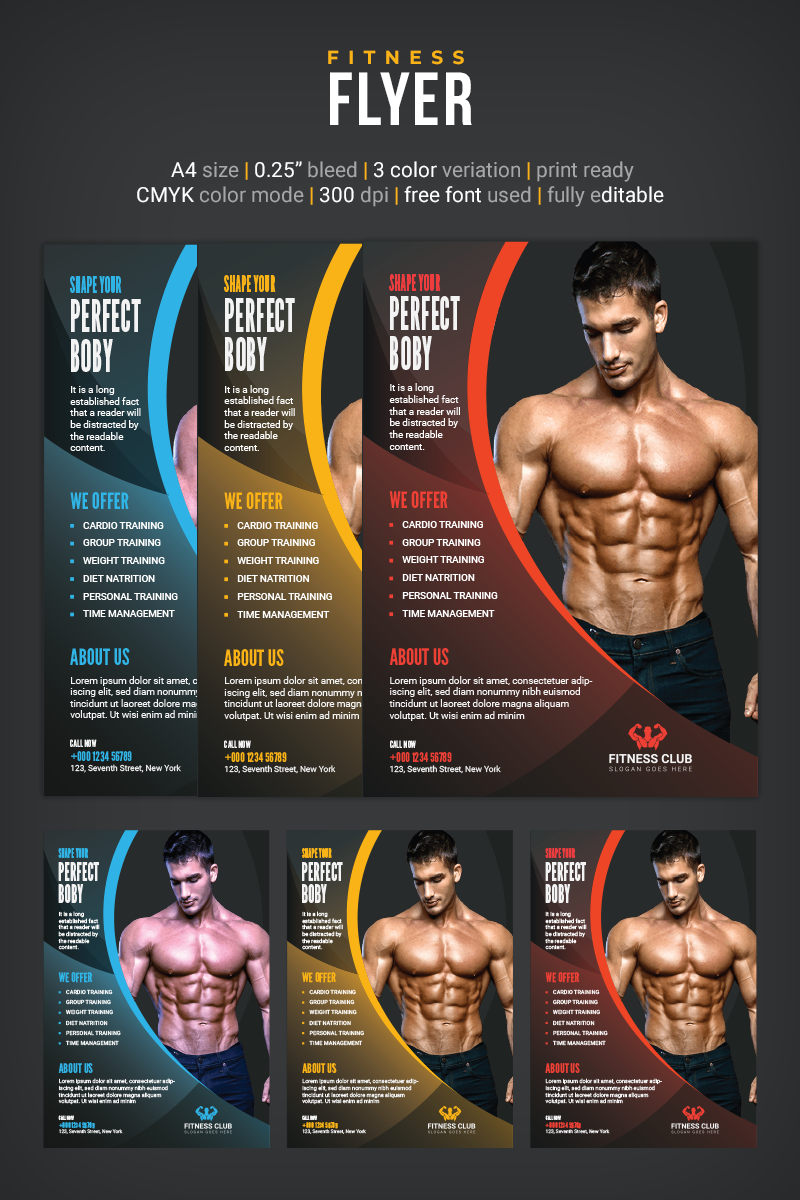 Download Фирменный стиль "Fitness Flyer Design - Corporate Identity Template" / Fitness Flyer Design - Corporate Identity Template - Фирменный стиль на тему графика fitness flyer design ad advertising body colorful energy fit fitness center fresh gym flyer gymnasium healthcare healthy leaflet magazine modern