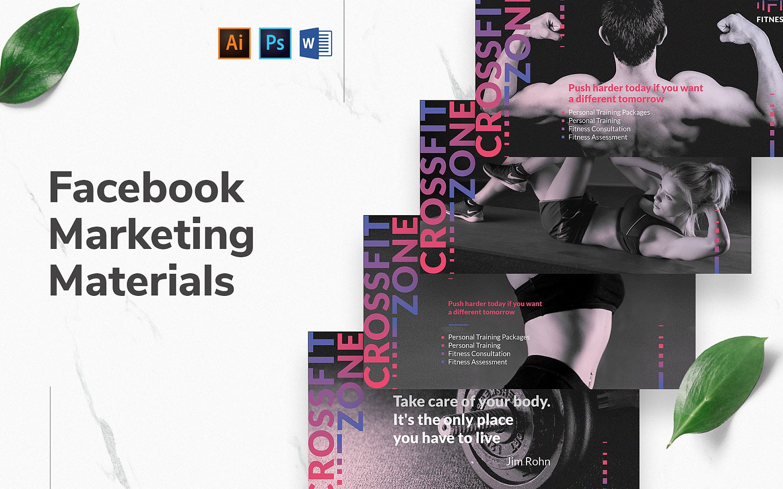 Download Шаблон для соцсетей "Fitness Studio Facebook Cover and Post Social Media Template" / Fitness Studio Facebook Cover and Post Social Media Template - Шаблон для соцсетей на тему графика facebook graphic design,facebook template editable,facebook template banner,facebook template cover,facebook template design,facebook template examples,facebook branding template,social media