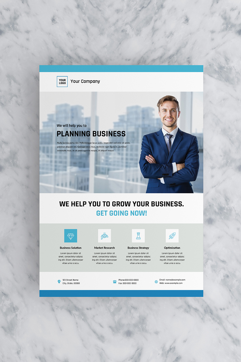 Download Фирменный стиль "Flat Blue Business Flyer - Corporate Identity Template" / Flat Blue Business Flyer - Corporate Identity Template - Фирменный стиль на тему графика business clean corporate design flyer fresh print ready printed psd template web designer