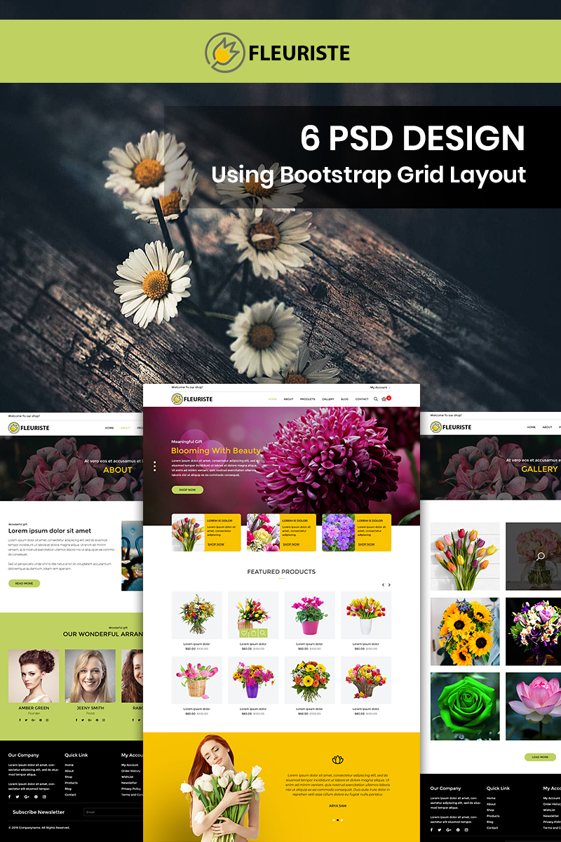 Download PSD шаблон "Fleuriste - Flower Shop PSD Template" / Fleuriste - Flower Shop PSD Template - PSD шаблон на тему цветочный магазин flowers shop ecommerce template theme psd photoshop