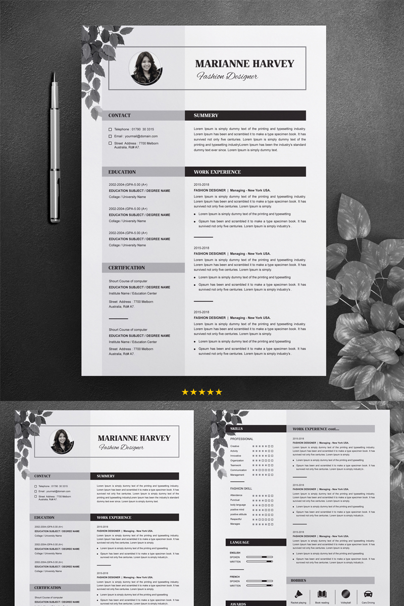 Download Резюме "Floral CV / Resume Template" / Floral CV / Resume Template - Резюме на тему графика resume template floral word cv 2 page feminine elegant design psd fashion designer