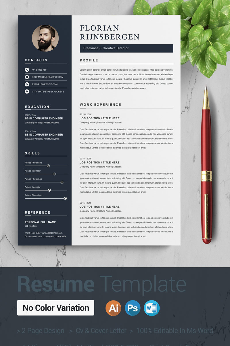 Download Резюме "Florian Resume Template" / Florian Resume Template - Резюме на тему графика 2 page a4 clean cv design elegant resume female feminine infographic letter minimalist modern portfolio professional indesign minimal pages