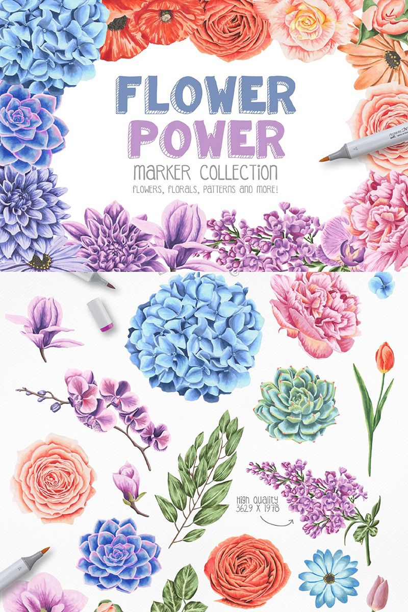 Download Иллюстрация "Flower Power Marker Collection - Illustration" / Flower Power Marker Collection - Illustration - Иллюстрация на тему графика marker patterns frames peony peonies rose flower flowers floral florals wedding initation wedding leaf leaves logo logos invitation card rsvp