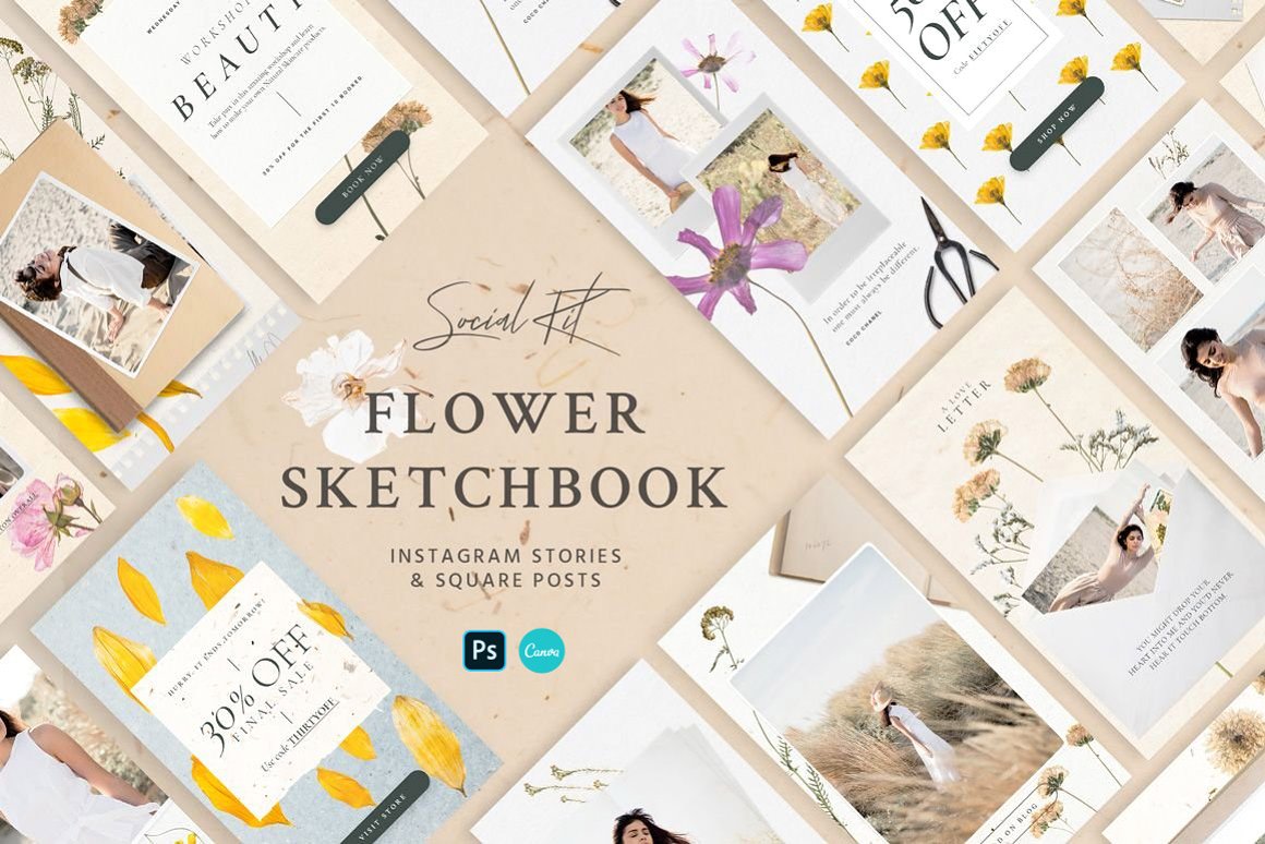 Download Шаблон для соцсетей "Flower Sketchbook Stories Kit Social Media Template" / Flower Sketchbook Stories Kit Social Media Template - Шаблон для соцсетей на тему графика flowers,kit,vintage,book,folder,paper,dry,flower,sketchbook,ripped,torn,decoration,fine_art,paper_mockup,mockup,instagram,stories,petals,influencer