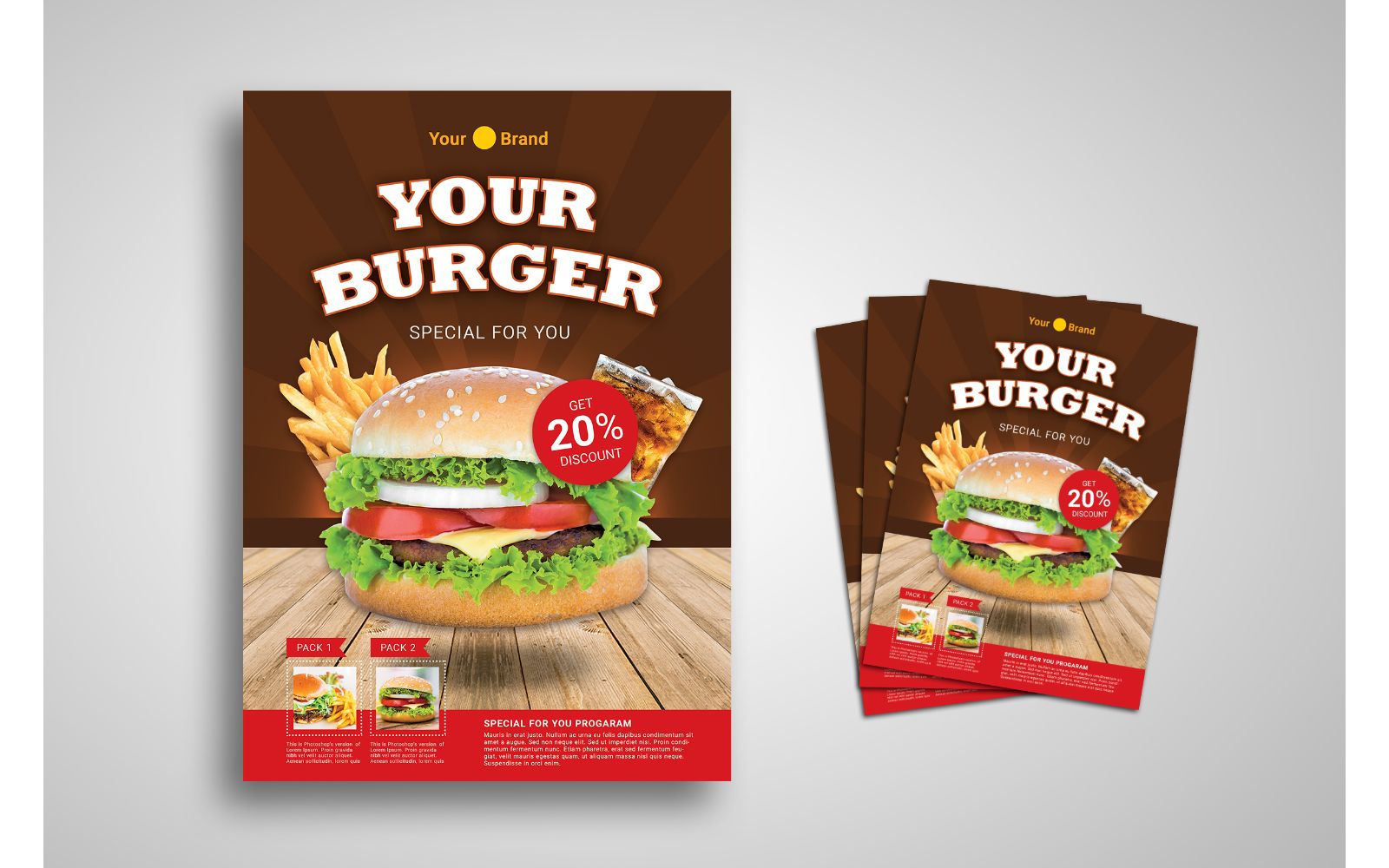 Download Фирменный стиль "Flyer Burger - Corporate Identity Template" / Flyer Burger - Corporate Identity Template - Фирменный стиль на тему графика background,banner,brochure,burger,cooking,delivery,dessert,eastern,flyer,flyer design,flyer psd template,food,fresh,layout,leaflet,lunch,main,courses,meal,menu