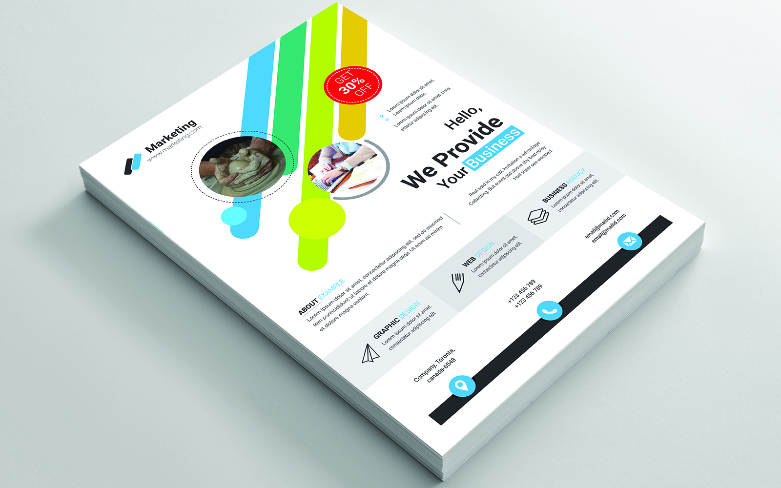Download Фирменный стиль "Flyer - Corporate Identity Template" / Flyer - Corporate Identity Template - Фирменный стиль на тему графика black,blue,brand,business card,card,clean,cmyk,color,company,corporate,creative,design,designer,eps,green,horizontal,modern,personal,print,print ready