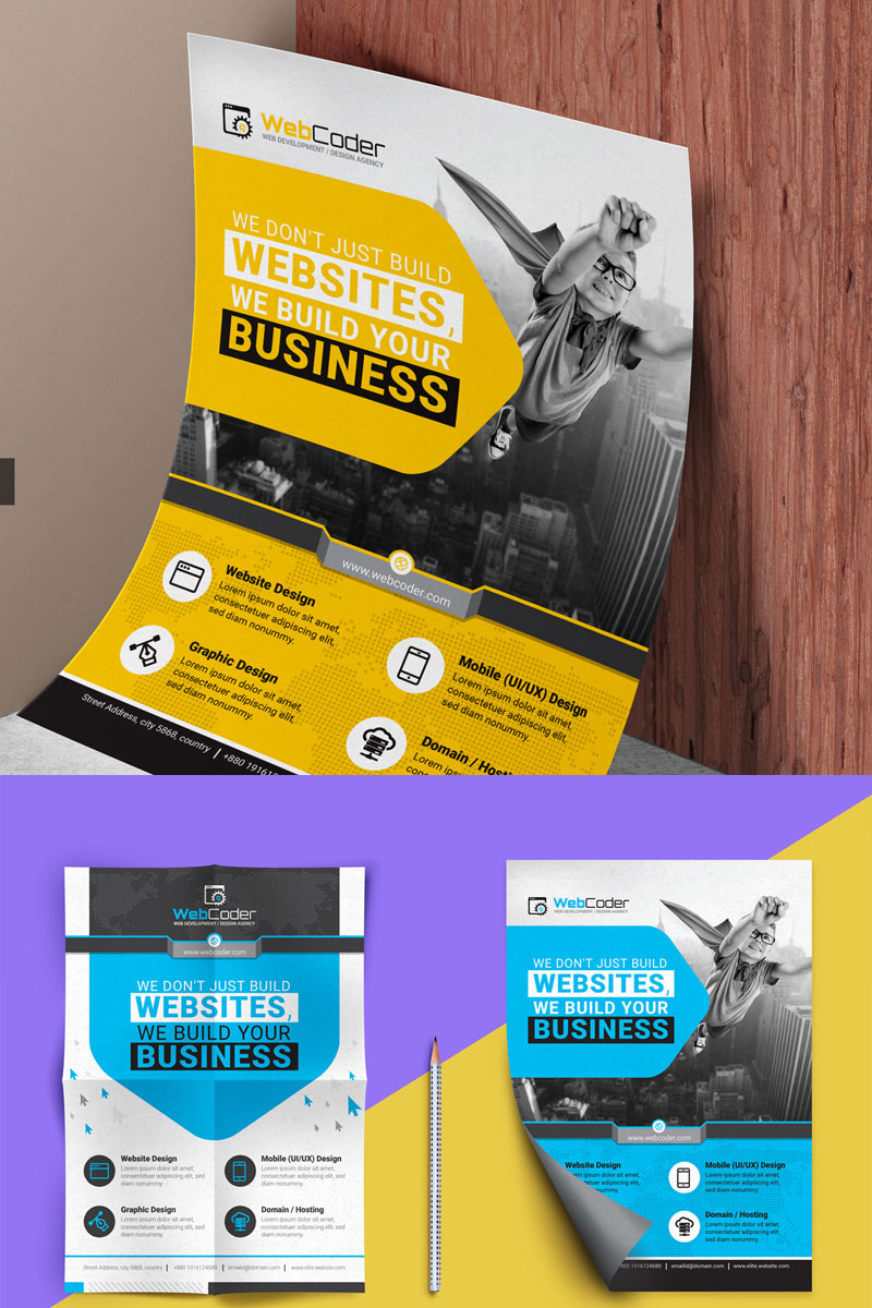 Download Фирменный стиль "Flyer for Web Development - Corporate Identity Template" / Flyer for Web Development - Corporate Identity Template - Фирменный стиль на тему графика web design development coding coder flyer bundle corporate business template psd poster design editable big mega advertising business flyer clean
