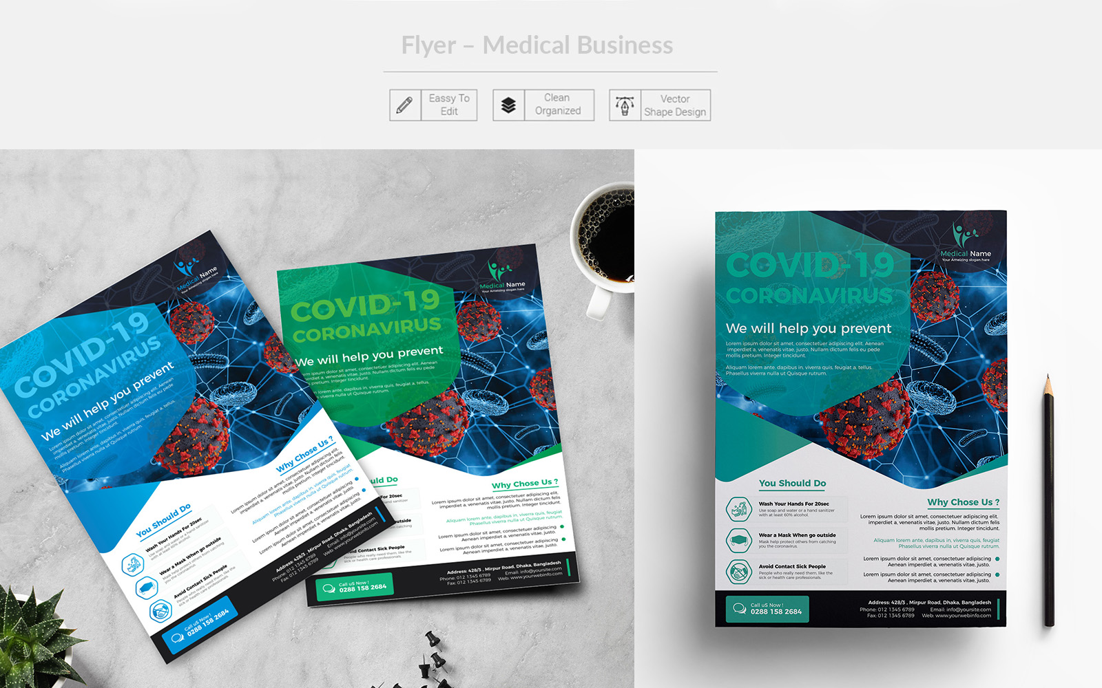 Download Фирменный стиль "Flyer – Medical Business - Corporate Identity Template" / Flyer – Medical Business - Corporate Identity Template - Фирменный стиль medicalbusiness,medicalflyer,medical,corona,coronavirus,covid-19,korona,clean,flyer,clinic,doctor,dentist,hospital,health,modern,multipurpose,printready,promotion