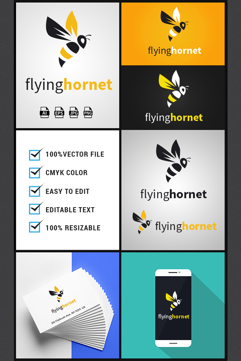 Download Шаблон логотипа "Flying Hornet Logo Template" / Flying Hornet Logo Template - Шаблон логотипа на тему графика bee logo design hornet brand branding identity online app logos idea crative animal illustration template fly flying happy symbol icon