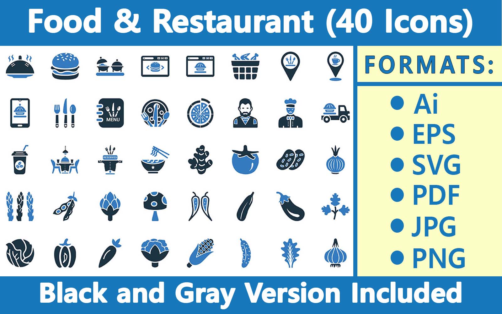 Download Набор иконок "Food and Restaurant | Vector Icon Set" / Food and Restaurant | Vector Icon Set - Набор иконок на тему графика food,restaurant,drink,bevarage,online order,delivery,service,coffee,shop,pizza,soup,fruit,vegetable,chef,waiter,menu,burger,onion,table,chili