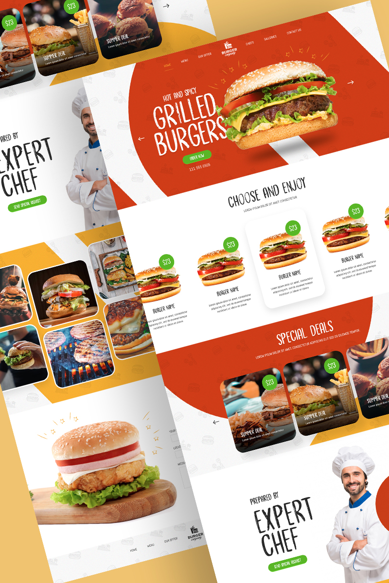 Download PSD шаблон "Food Industry - Food & Restaurant PSD Template" / Food Industry - Food & Restaurant PSD Template - PSD шаблон на тему графика food bakery bar cafe desert drink meal menu reservation restaurant shop store burger fast pizza orange yellow psd web ui