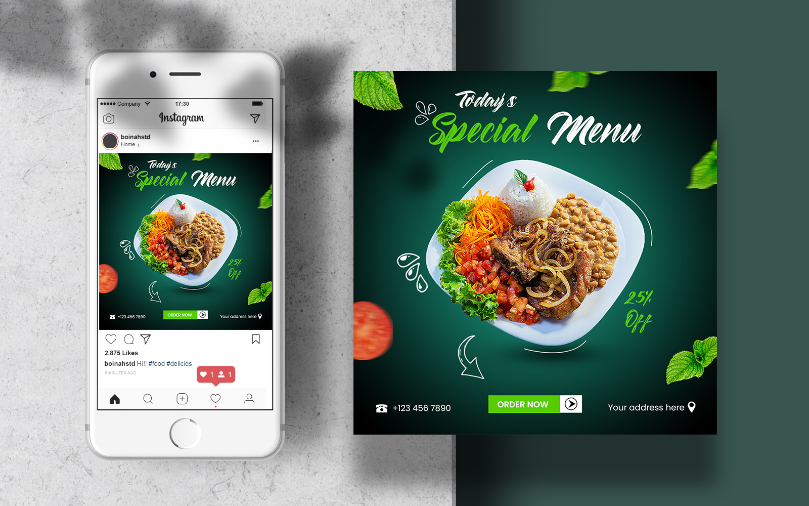 Download Шаблон для соцсетей "Food Instagram Template Banner Post for Social Media" / Food Instagram Template Banner Post for Social Media - Шаблон для соцсетей на тему графика nstagram template,instagram post,marketing,food,layout,poster,square,feed,menu,social media,restaurant,fast food,templates,food template,instagram feed,foodstuff,banner template,healthy food,