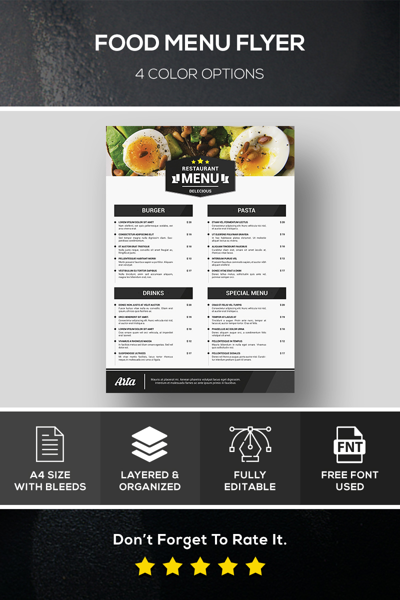 Download Фирменный стиль "Food Menu Flyer - Corporate Identity Template" / Food Menu Flyer - Corporate Identity Template - Фирменный стиль на тему графика food,food menu,food flyer,flyer,template,design,restaurant,breakfast,drink,delivery,fastfood,eat,special menu,burger,business,tasty,vegetable