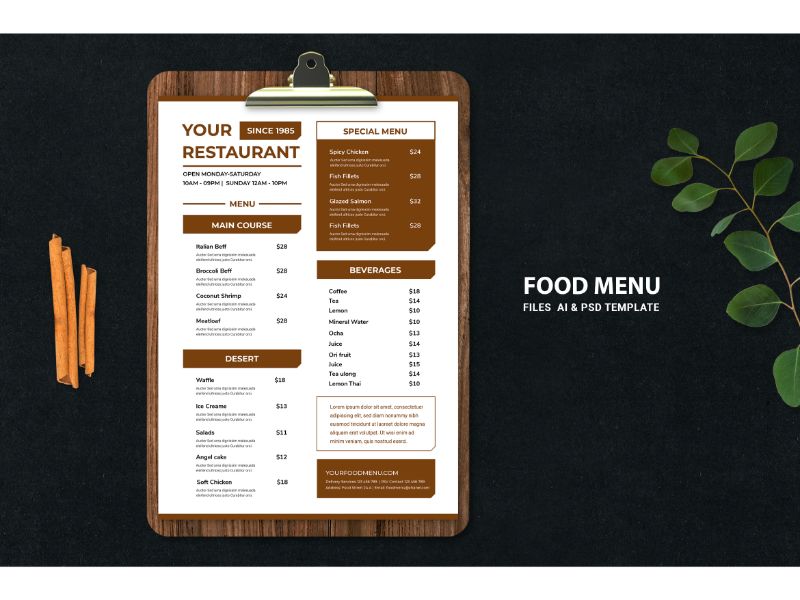 Download Фирменный стиль "Food Menu True Cinnamon Tree - Corporate Identity Template" / Food Menu True Cinnamon Tree - Corporate Identity Template - Фирменный стиль на тему графика adobe illustrator,adobe photoshop,bar,bundle,cafe,catering,coffee,shop,cookery,dishes,drink,food,list,menu,original,price,restaurant,taste