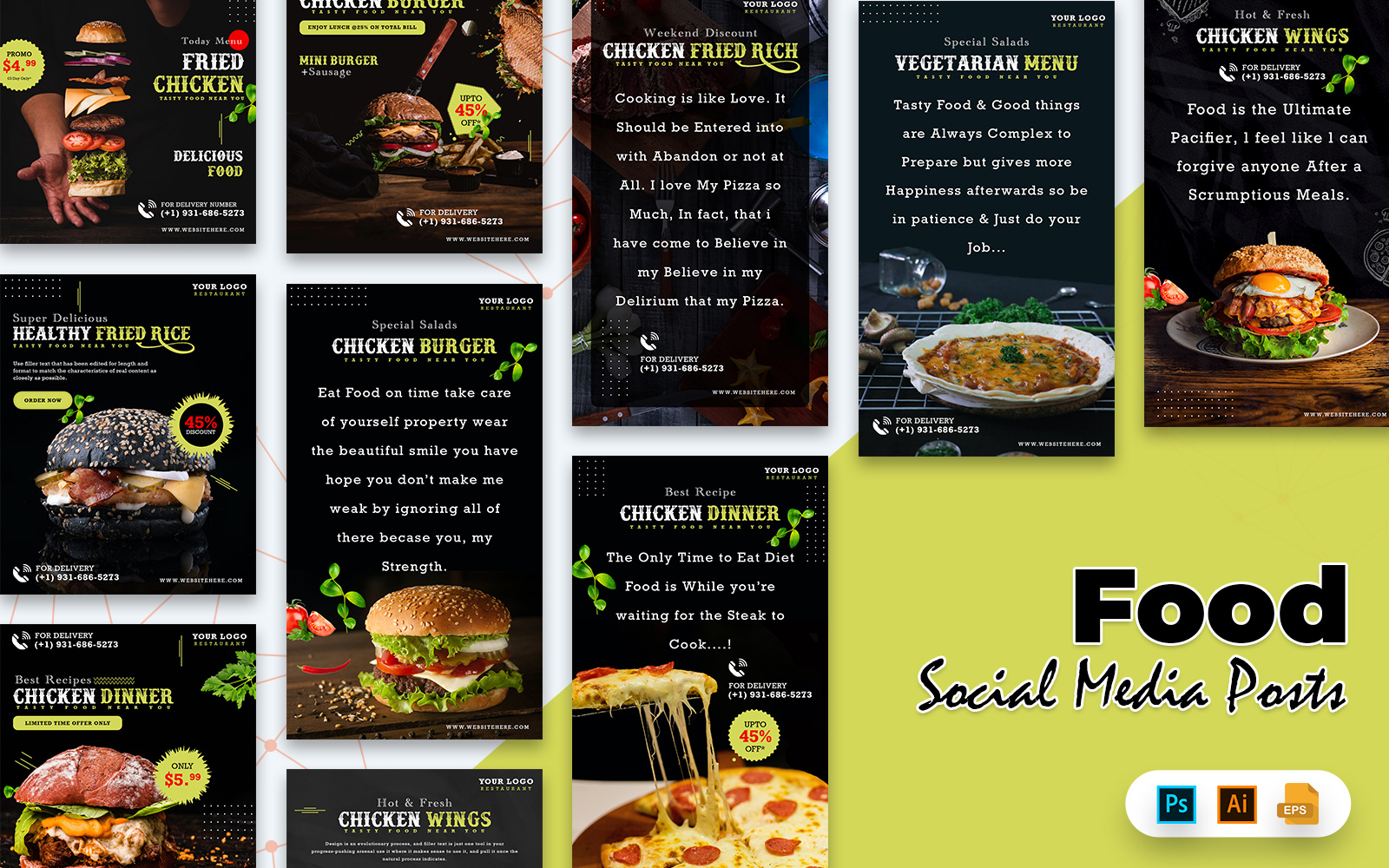 Скриншот - Download Food Posts Social Media Template - Шаблон для соцсетей на тему графика