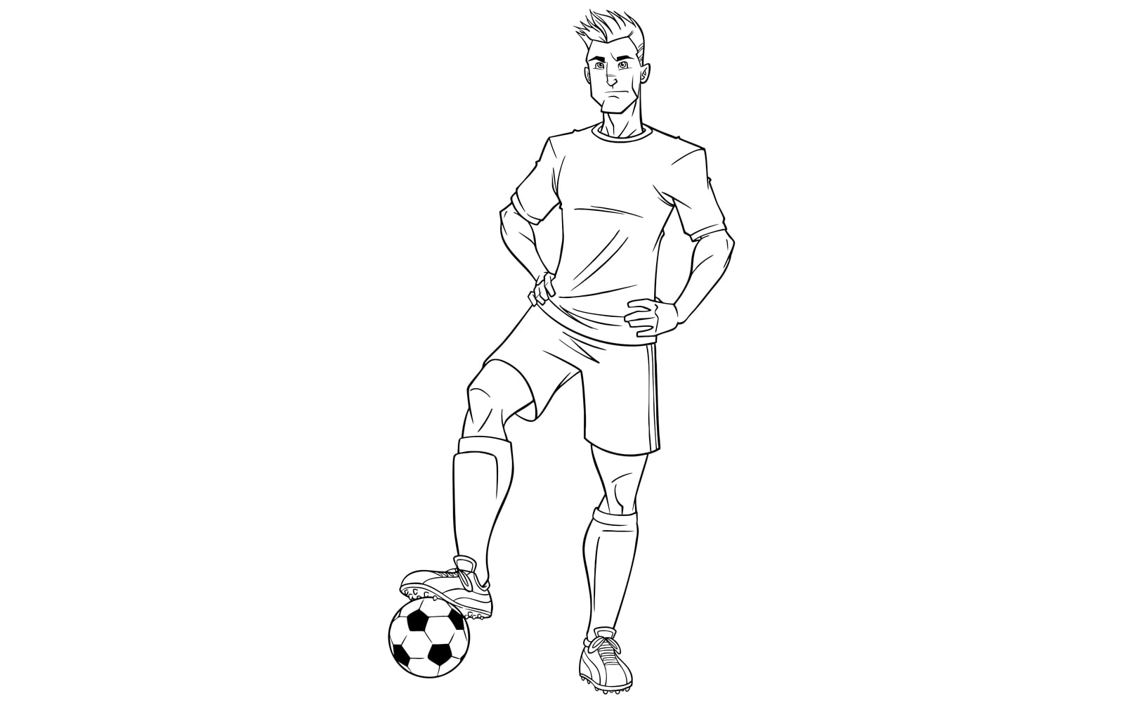 Download Иллюстрация "Football Player Line Art - Illustration" / Football Player Line Art - Illustration - Иллюстрация на тему графика man,football,soccer,player,ball,game,match,sport,footballer,cartoon,character,standing,uniform,yellow,equipment,determined,ready,beginning,start,competitive