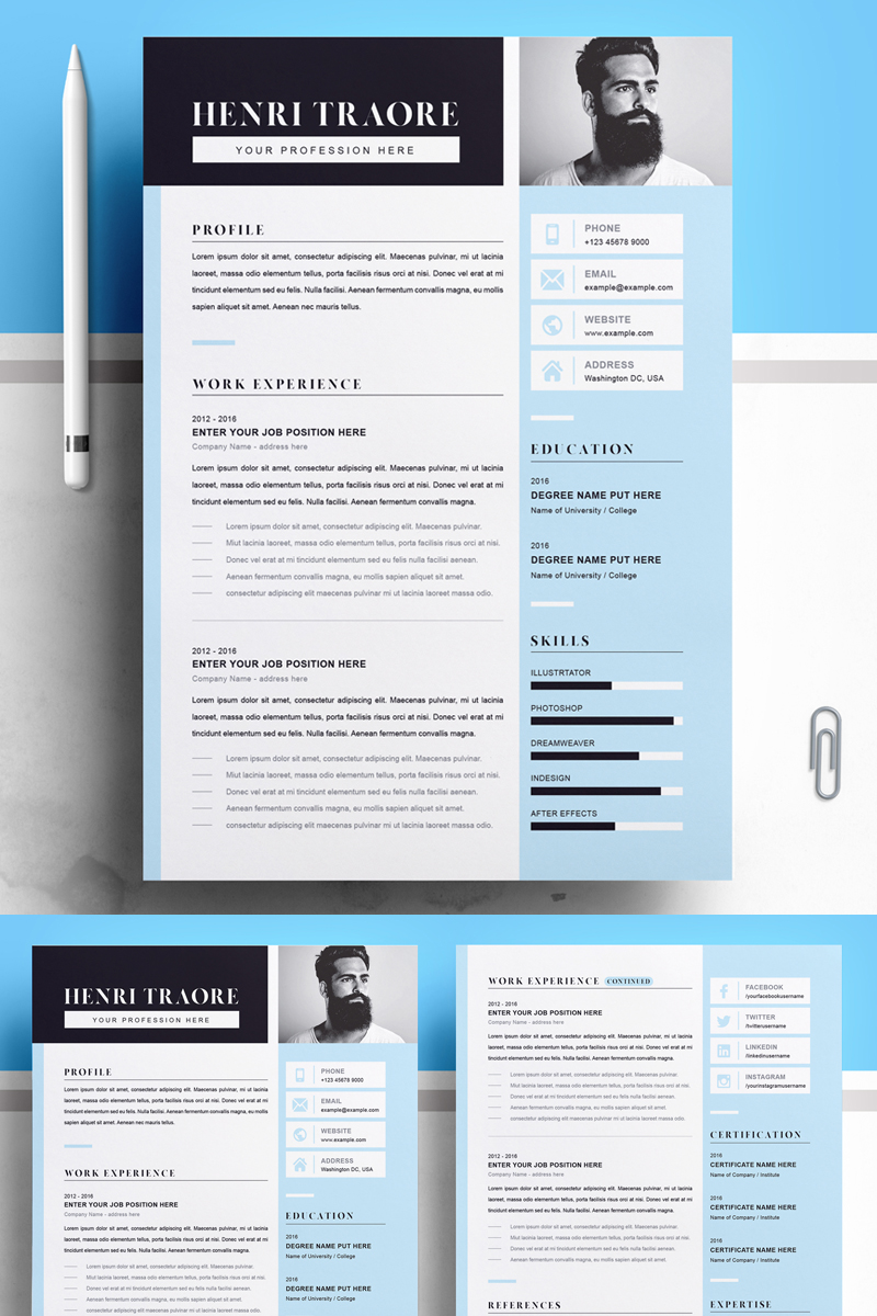 Download Резюме "For Henri Resume Template" / For Henri Resume Template - Резюме на тему графика 1 page resume 2 clean cv cover letter design template illustrator eps mac pages microsoft word modern photoshop psd professional